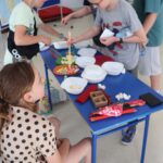 - Pałeczki – przenoszenie przedmiotów pałeczkami (chrupki i orzeszki).
