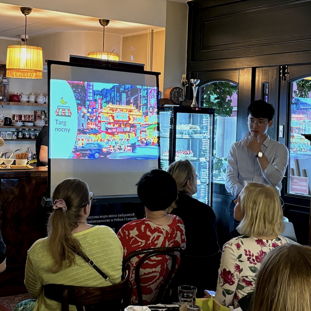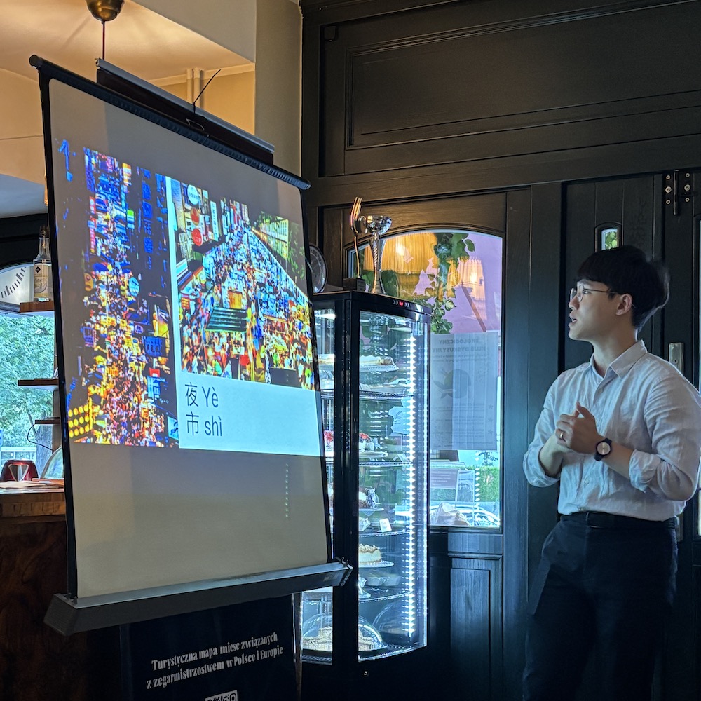 波蘭臺灣華語文學習中心於 2025 年 7 月 22 日星期二,在華沙 Zegarmistrzowska 鐘錶咖啡廳舉行了一場「台灣夜市」文化交流活動。由中心黃致翔副主任主講介紹台灣的文化、風景以及日常生活。本活動為華沙華沙市莫科托夫區公所「藝術風・異國味!」專案贊助舉行。