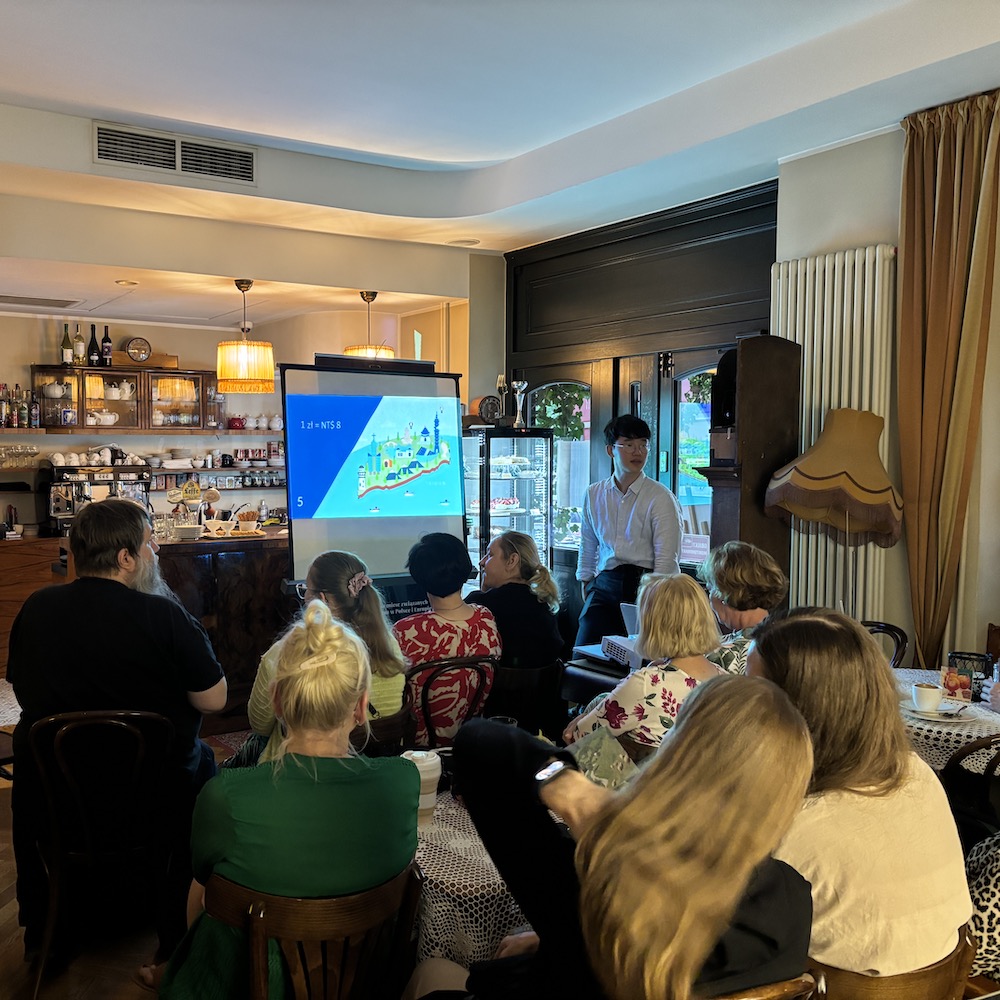 We wtorek 22 lipca 2025 w kawiarni Zegarmistrzowska odbyło się spotkanie z Tony’m Huangiem, wicedyrektorem Tajwańskiego Instytutu Nauki Języka Chińskiego Huayu, który przybliżył uczestnikom kulturę, krajobrazy i codzienność Tajwanu. Spotkanie odbyło się w ramach projektu “Artystycznie! Egzotycznie!” finansowanego ze środków Urzędu Dzielnicy Mokotów m. st. Warszawy.