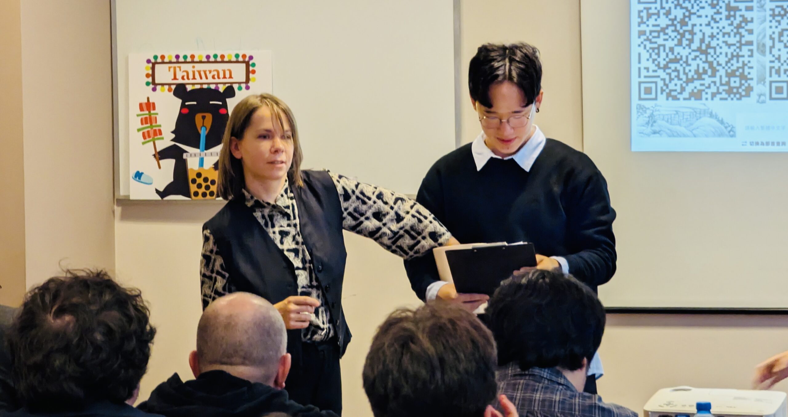 活動一開始,由孔若琳老師帶來精彩的【臺灣文化講座】——從地理、歷史、族群、美食到觀光,一次帶大家看見多元又迷人的臺灣。接著沈鈺翔老師帶領大家進入【篆刻工作坊】。參與者親手刻出屬於自己的漢字印章,有人還拿筆記本收集大家的印章當紀念呢!